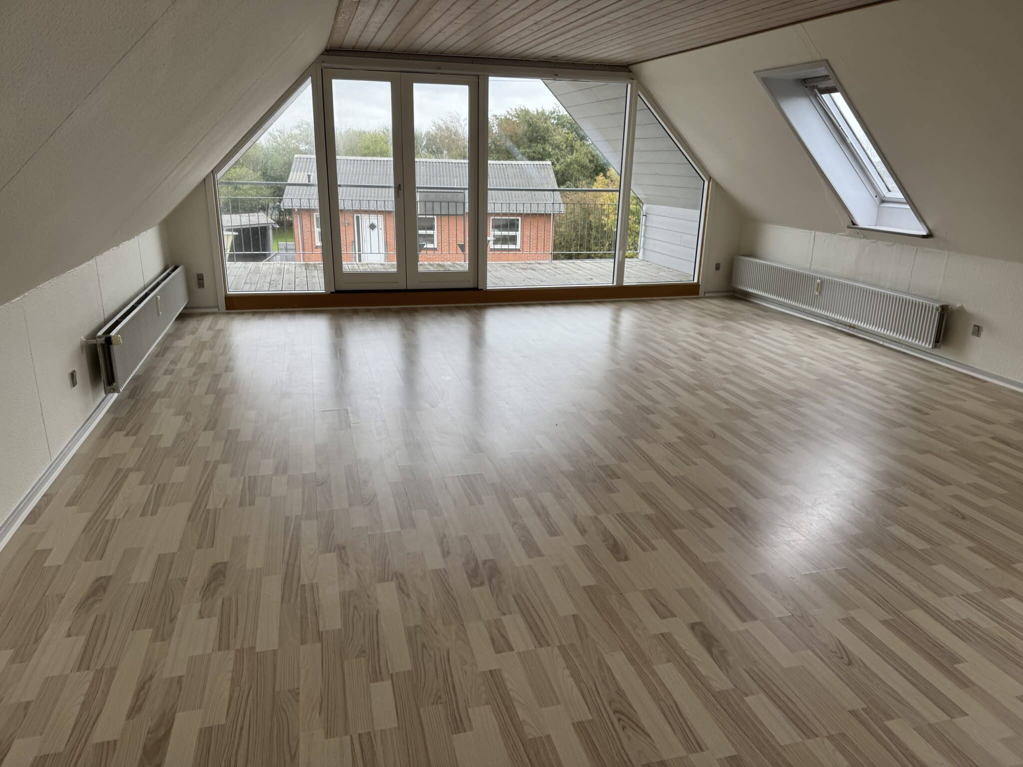 Stor lejlighed på 1. sal med dejlig overdækket altan mod sydvest. Hele ejendommen kan lejes for kr. 7.800 pr. md. eller mulighed for køb.